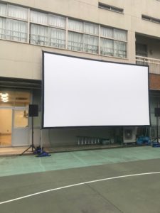 100名以上の屋外で、上映用DVDと共に、 インターフェース・ミキサー・プロスピーカー(アンプ内蔵)・音響配線・プロジェクター・200~300インチ(370×660cm)スクリーン・再生用PC・技師(映像兼PA)をセットでご用意します。※作品によって価格は推移します。※人数は大人・子供や着席のスタイルによって変動します。